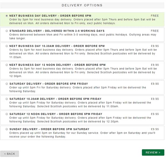 If it does not exceed 150 pounds, the postage for Standard Delivery is 3.95 pounds. If you really can’t wait to receive the package the next day, you can also choose DPD UK Next Business Day, the postage is 9.95 pounds. However, if you want to receive the package the next day, please note that this option should be used from Monday to Thursday, or you will receive the package next Monday. And if you want to receive the goods the next day, you must place an order before 17pm the day before.