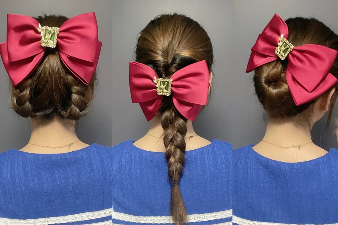 It is the simplest and easy to operate without any processing. After combing the hair, draw a straight hair piece directly above the ear, tie up the upper part of the hair and wear a bow, so that the bangs will not reach behind the ear. Simple, gentle and convenient to go out.